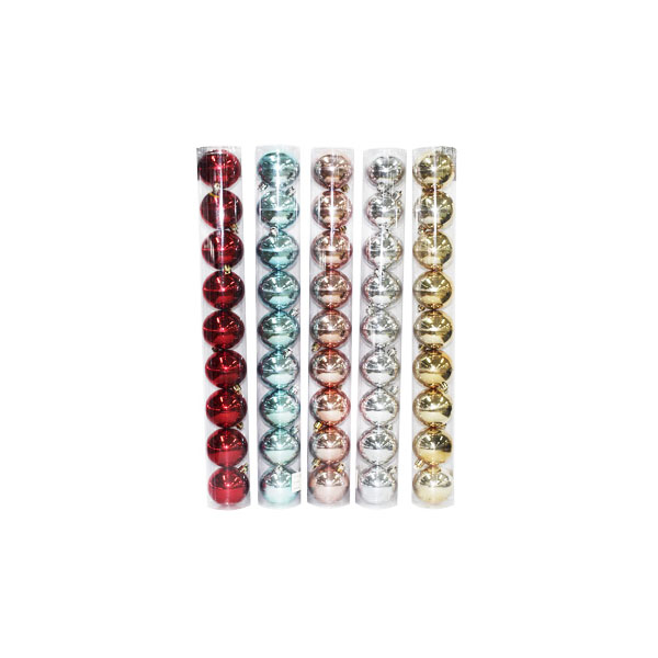 Tubo com 9 bolas lisas PVC 5,8cm, resistentes e coloridas para decoração natalina.