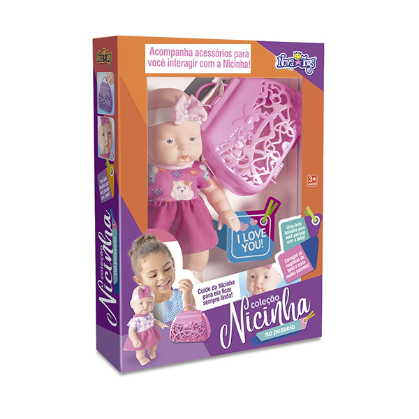 Boneca Nicinha com bolsinha passeio, brinquedo educativo e divertido para crianças.