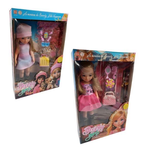 Boneca vinil Beverly Girls com acessórios, segura e detalhada, ideal para diversão e coleções infantis.
