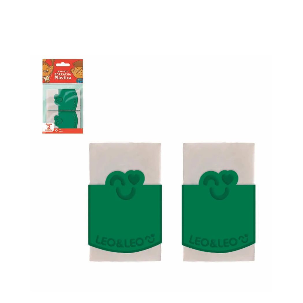 Kit 2 borrachas brancas com capa protetora, práticas e duráveis para uso escolar e escritório.