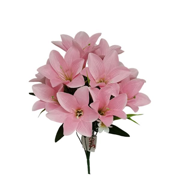 Buquê com 10 lírios artificiais sofisticados e realistas, indicado para decoração elegante e arranjos florais refinados.