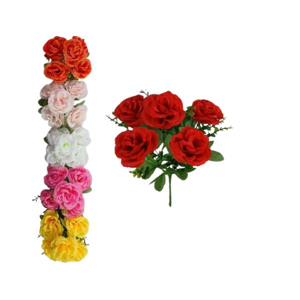 Buquê mini com 5 rosas abertas artificiais, delicado e durável. Ideal para decoração e arranjos florais.