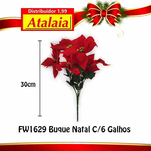 Buquê natalino aveludado com 6 flores, sofisticado e perfeito para decoração de Natal.