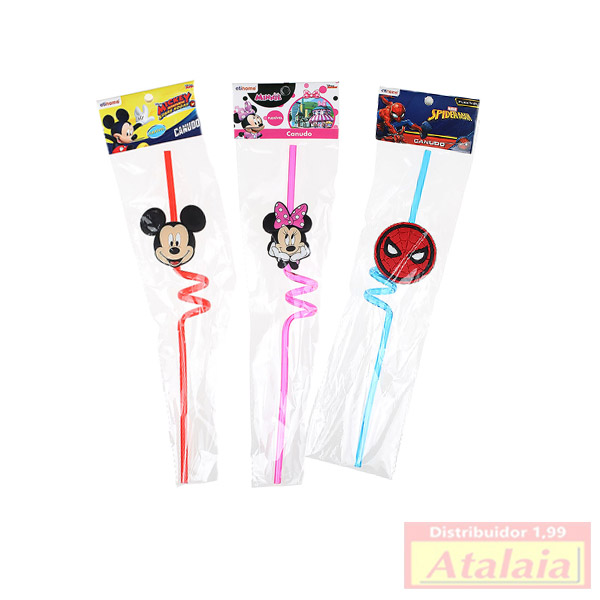 Canudo infantil com personagens, resistente e colorido, perfeito para crianças.