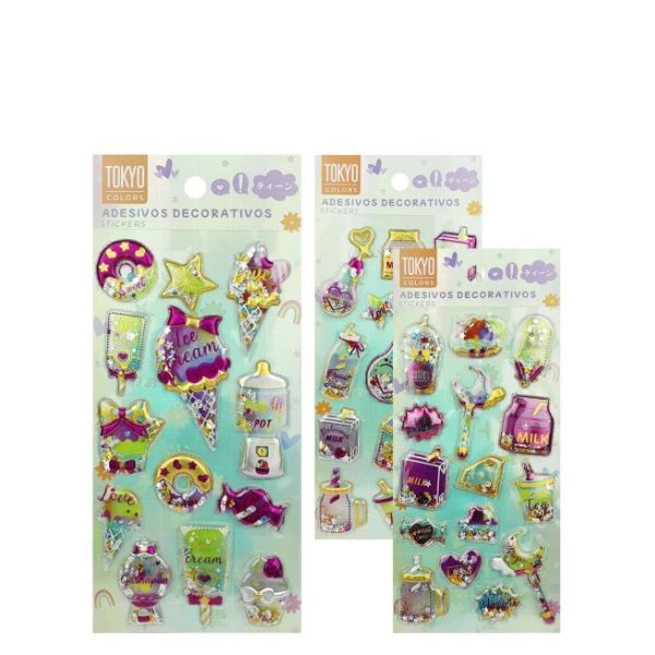 Cartela adesivos decorativos com relevo, perfeita para personalizar objetos e artesanatos.