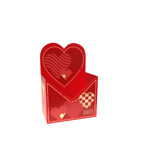 Cesta papelão coração 20x12x31cm, leve e resistente, perfeita para presentes e decoração romântica.