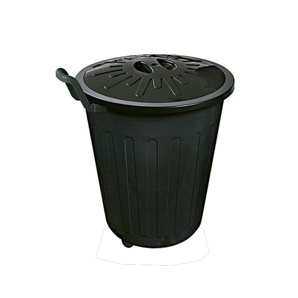Cesto plástico fechado 100L com rodas.