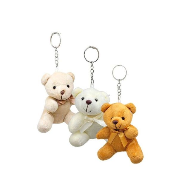 Chaveiro pelúcia urso 9cm, macio e fofo, perfeito para presente e decoração pessoal.