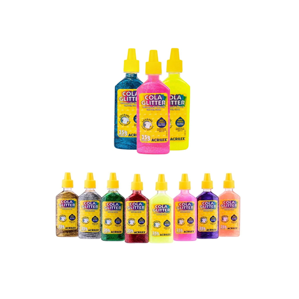 Cola glitter 35g, prática e brilhante, perfeita para artesanato e trabalhos criativos.