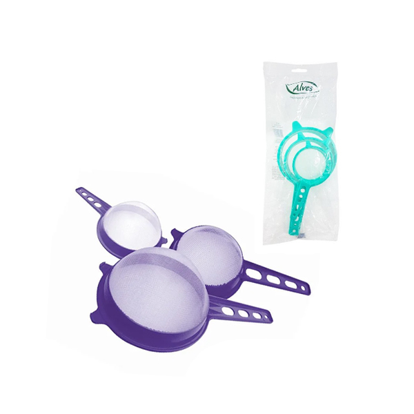Conjunto 3 peneiras Alves, pequeno, médio e grande, resistentes e práticas para cozinha.