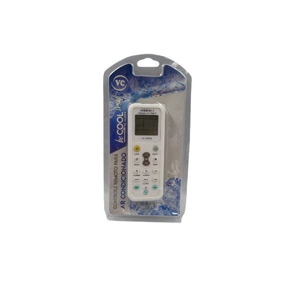 Controle remoto universal para ar condicionado, fácil de programar e compatível com várias marcas.