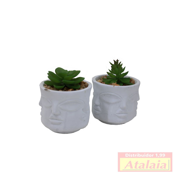 Enfeite Vasinho Ceramica Rosto C/suculenta