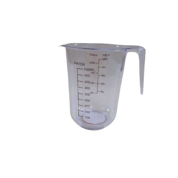 Jarra acrílica 500ml, prática e resistente, ideal para medir ingredientes na cozinha com facilidade.