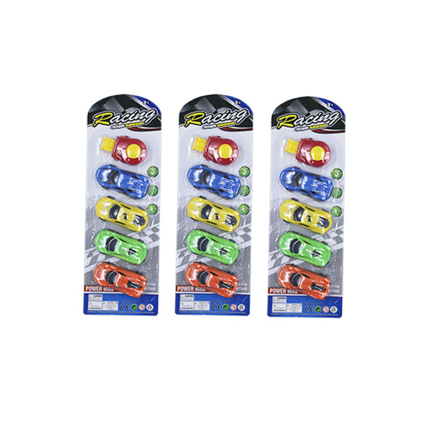 Kit carrinho com lançador e 5 peças, brinquedo interativo que estimula coordenação e criatividade infantil.
