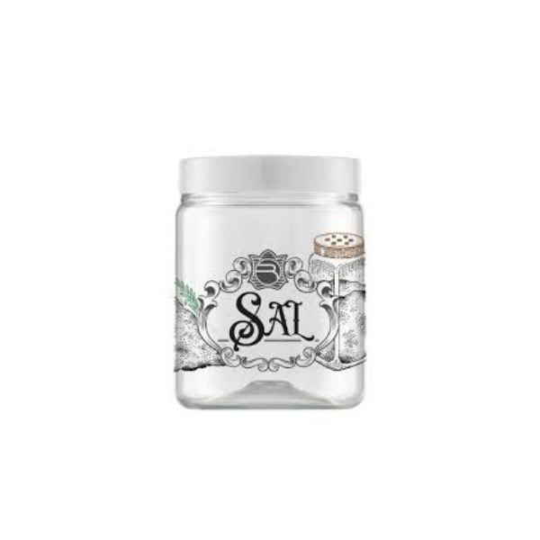 Pote plástico decorativo 650ml, ideal para armazenar sal e cappuccino com praticidade.