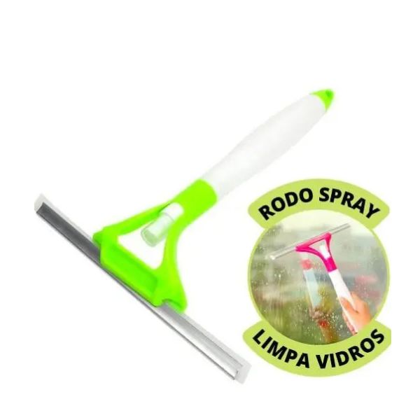 Rodo plástico limpa vidros com borrifador, prático e eficiente para limpeza rápida e eficaz.