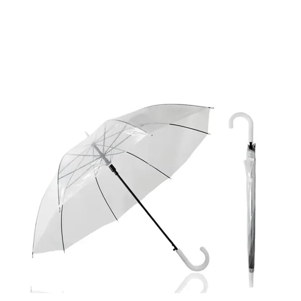 Sombrinha automática transparente, prática e resistente para proteção contra chuva.