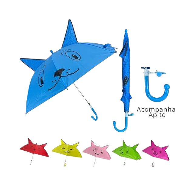 Sombrinha infantil com apito e orelhinhas, divertida e prática. Proteção e diversão para crianças.