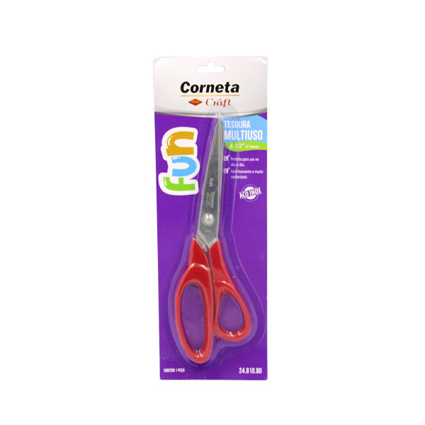 Tesoura multiuso 8″, resistente e afiada, perfeita para cortes diversos em casa e trabalho.